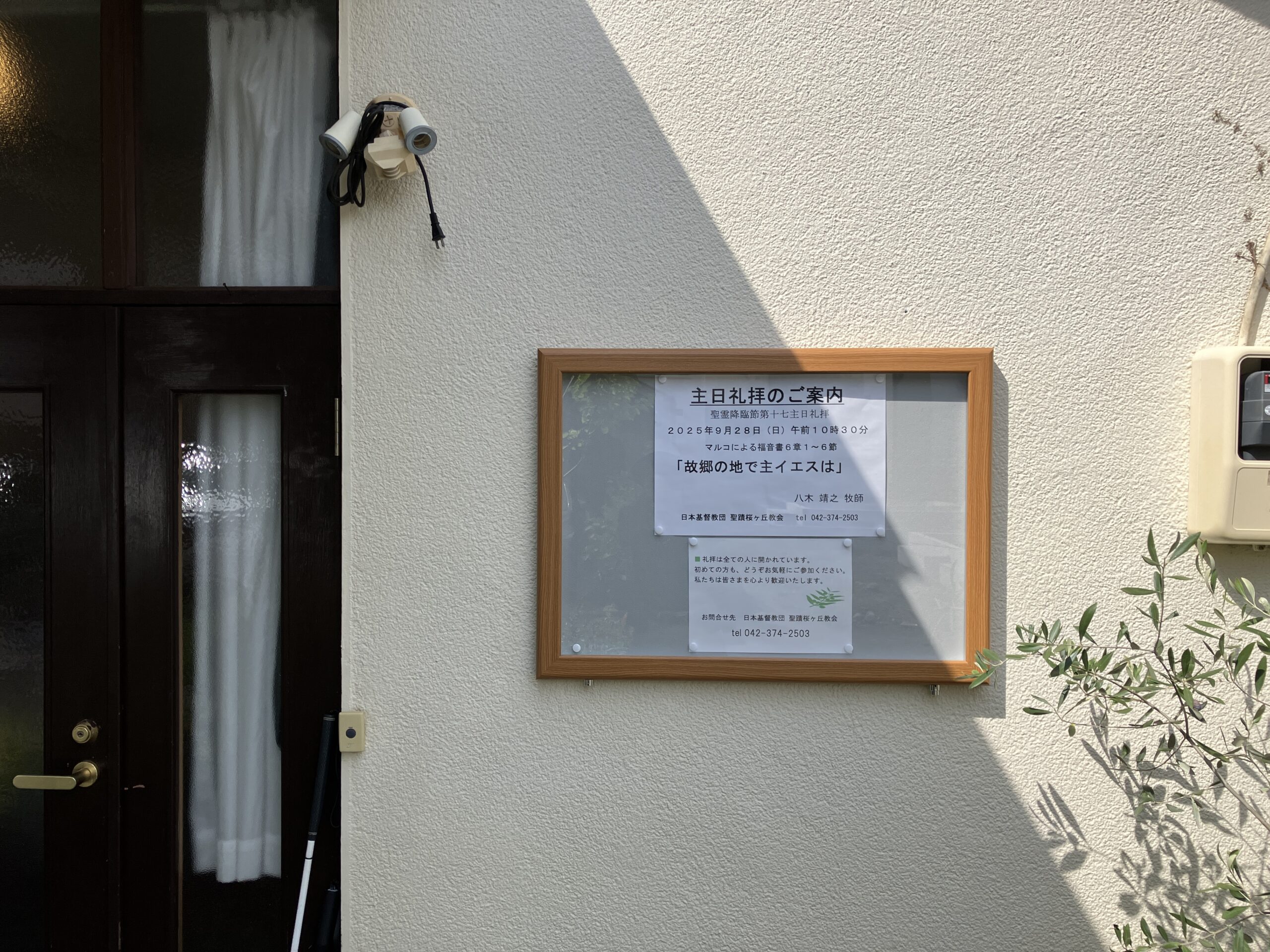 礼拝のご案内などを、正面からよく見える場所に大きく掲出することができるようになりました。